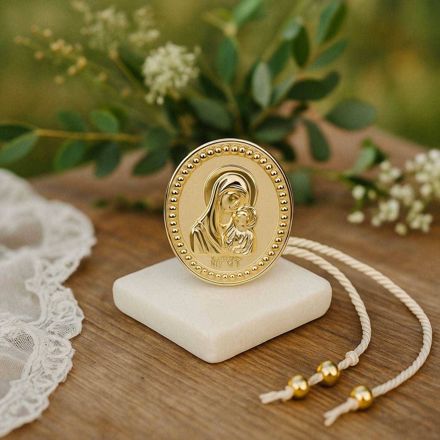 Μπομπονιερα Βαπτισης Εικονα Παναγια σε πετρα.