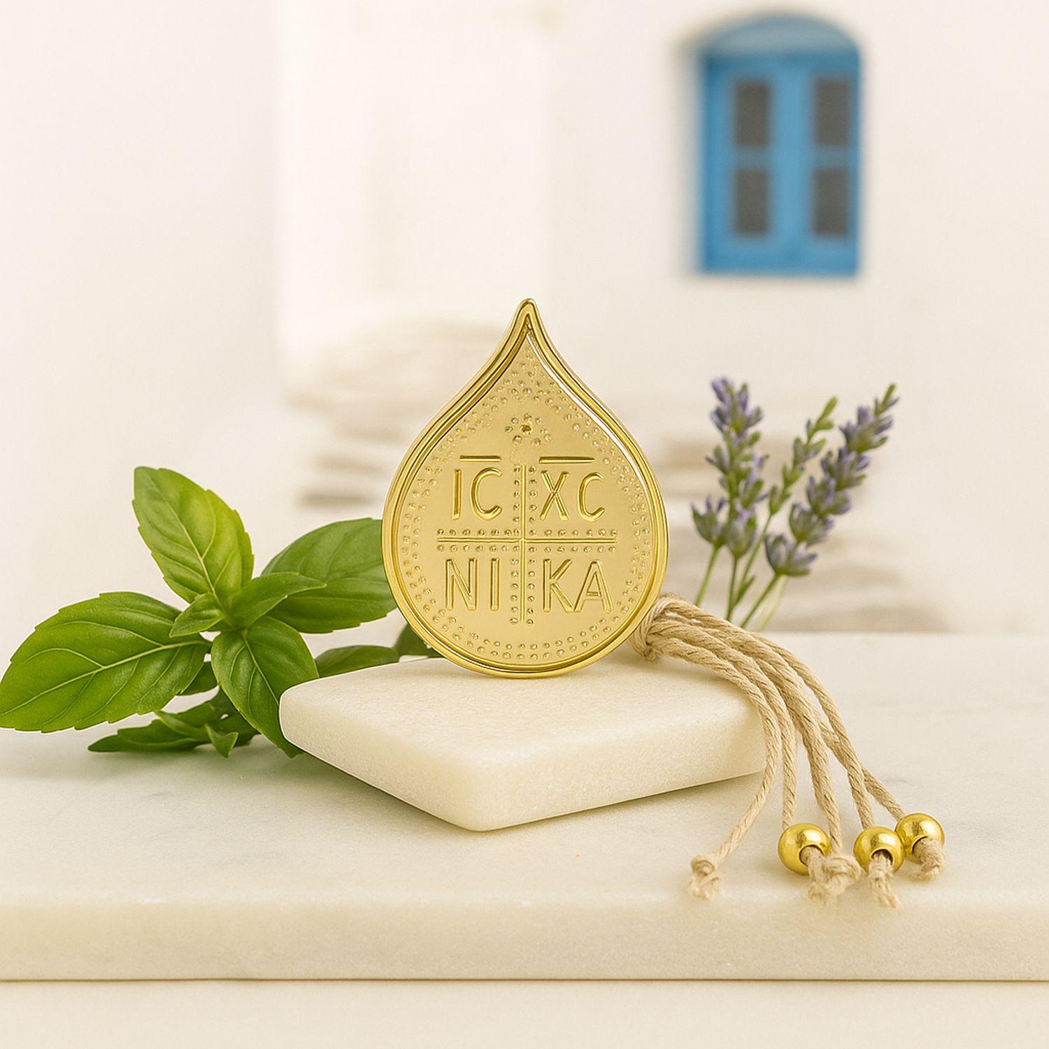 Μπομπονιέρα γάμου – βάπτισης μεταλλικό Κωνσταντινάτο σε σχήμα δάκρυ, ένα ενθύμιο εκλεπτυσμένης αισθητικής και διαχρονικής άξιας.