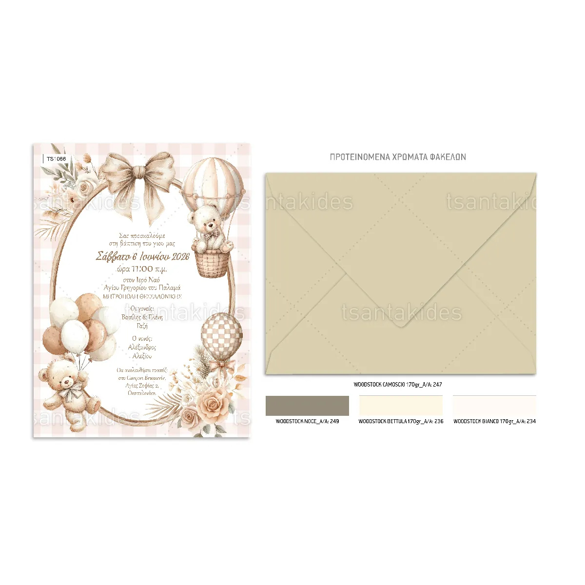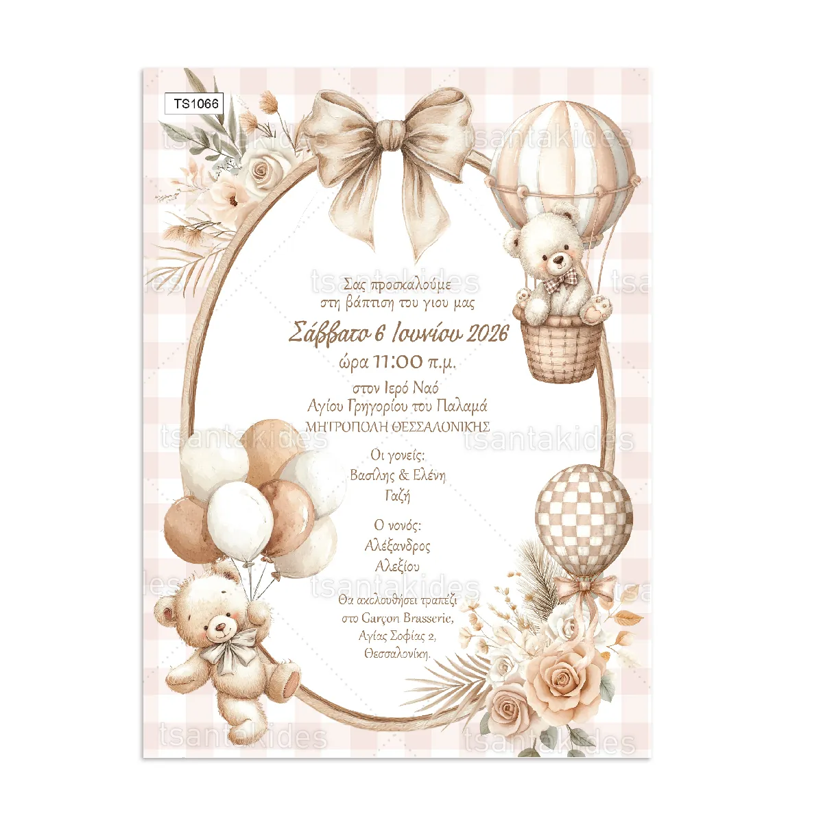 ΠΡΟΣΚΛΗΤΗΡΙΟ ΒΑΠΤΙΣΗΣ Boho Teddy Bear ΑΡΚΟΥΔΑΚΙ ts1066
