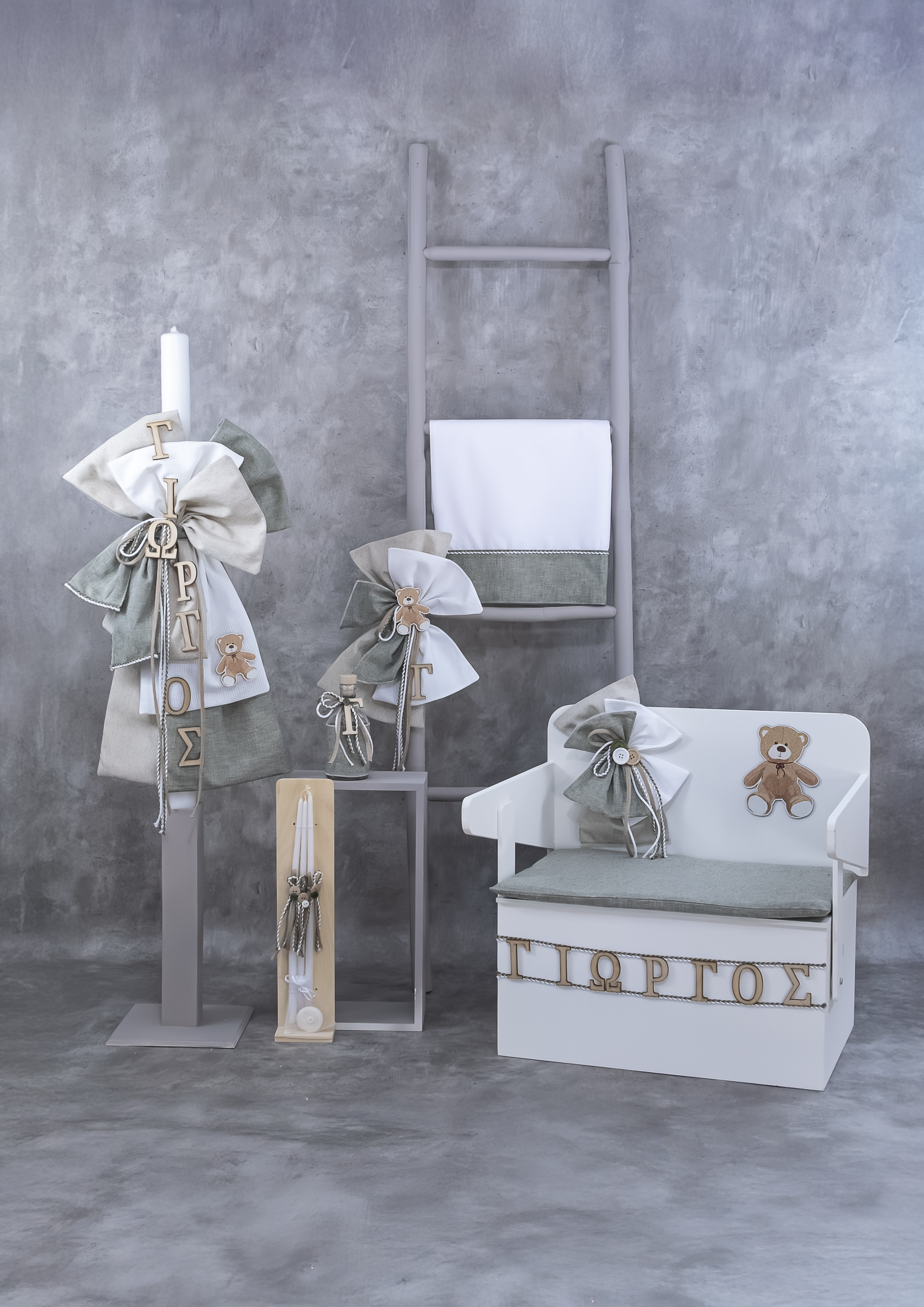Ολοκληρωμένη πρόταση χειροποίητου βαπτιστικού σετ.