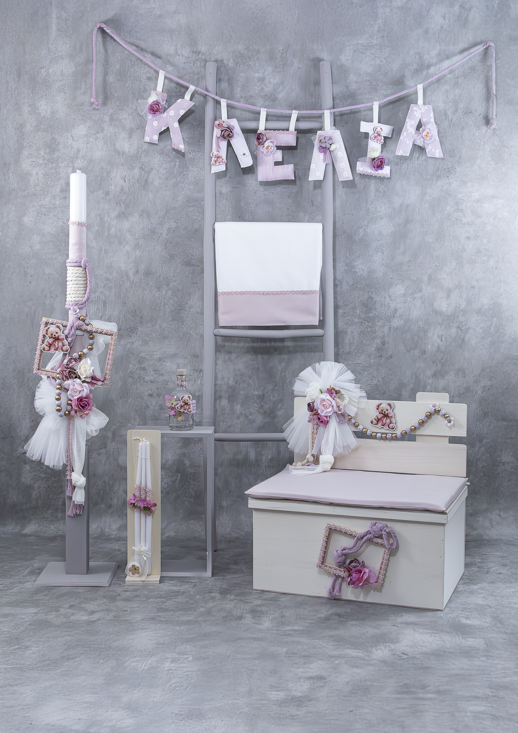 Ολοκληρωμένη πρόταση χειροποίητου βαπτιστικού σετ.