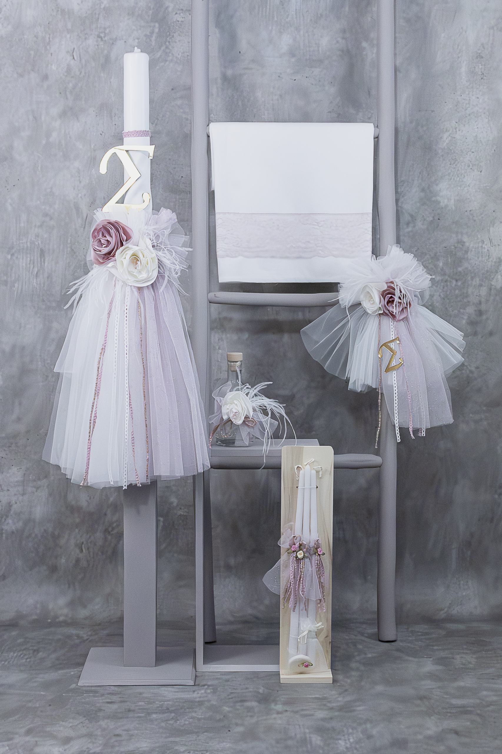 Περιλαμβάνει: Λαμπάδα, Λαδόπανα, Λαδοσετ , Μποτονιέρα και βαλίτσα.