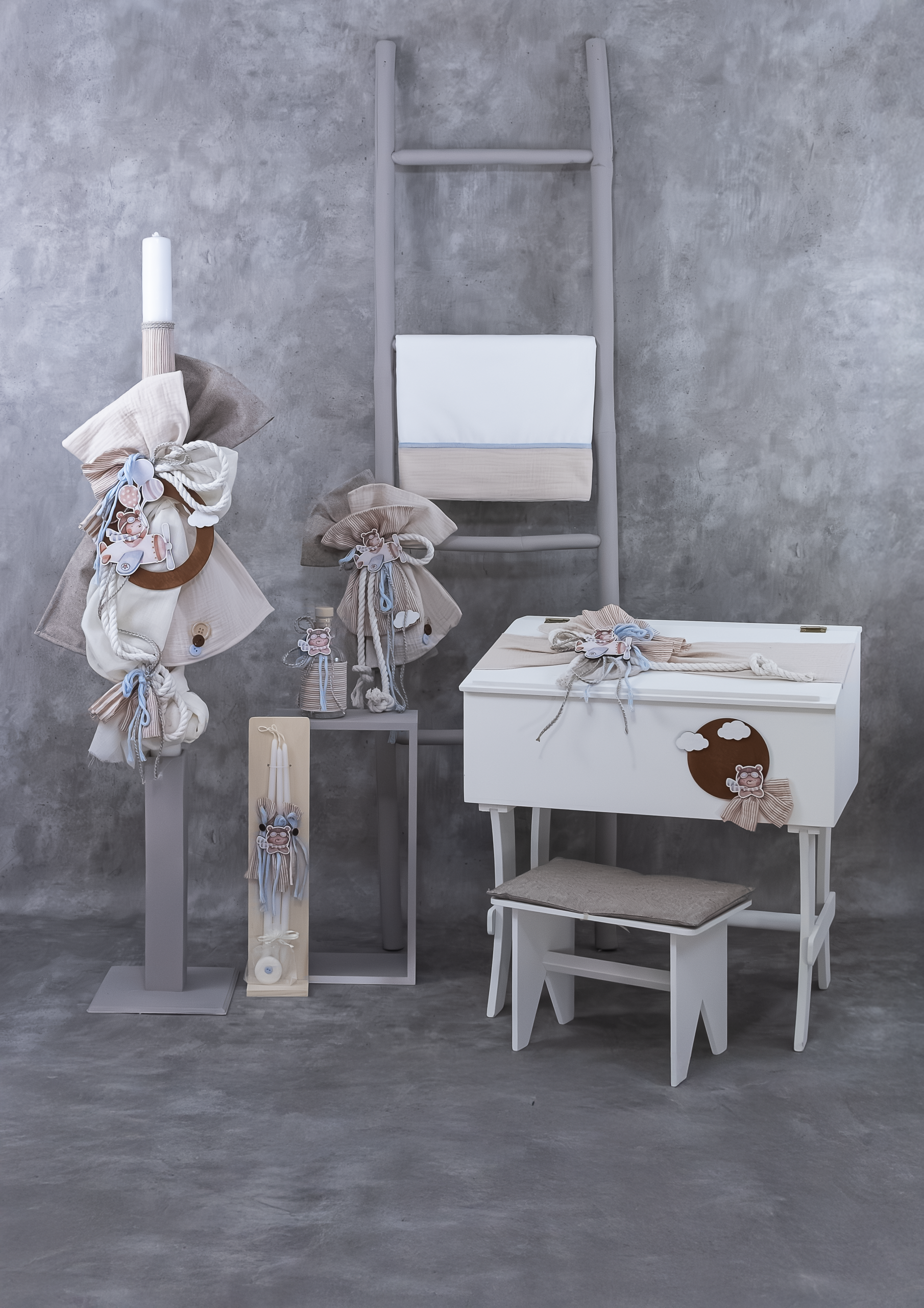 Ολοκληρωμένη πρόταση χειροποίητου βαπτιστικού σετ.