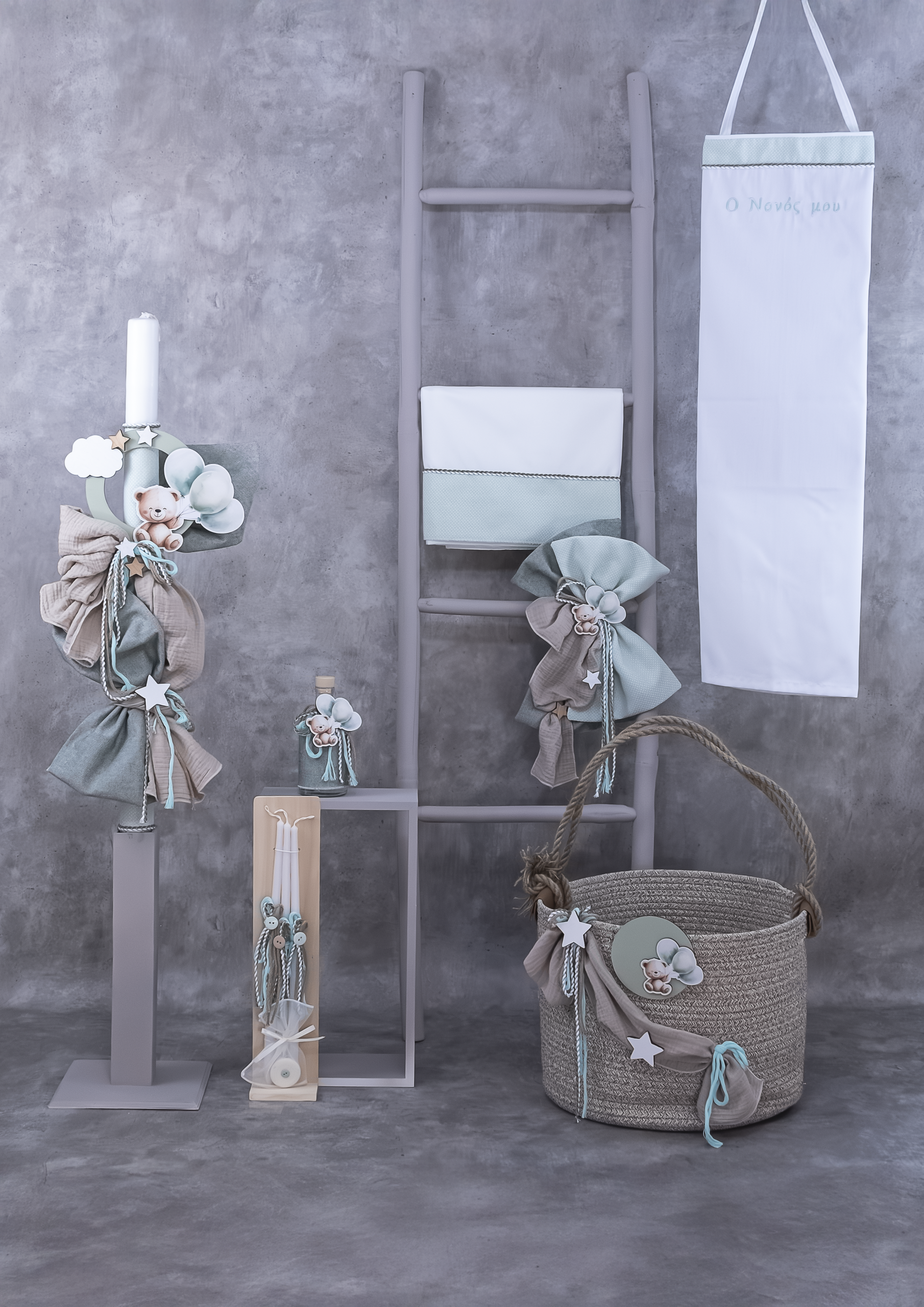 Χειροποίητο σετ βάπτισης με θέμα “Mint Bear & Ballons”