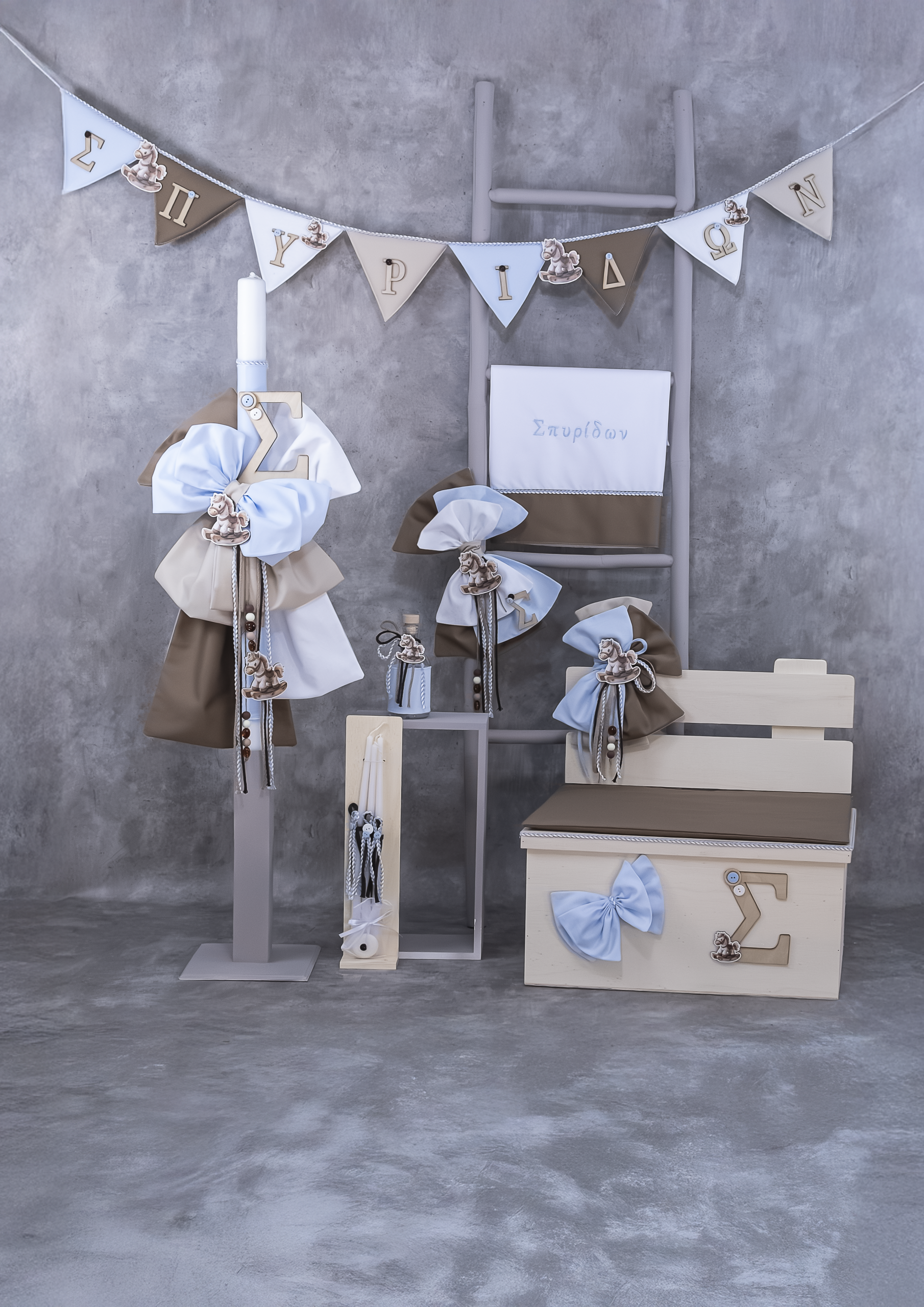 Ολοκληρωμένη πρόταση χειροποίητου βαπτιστικού σετ.