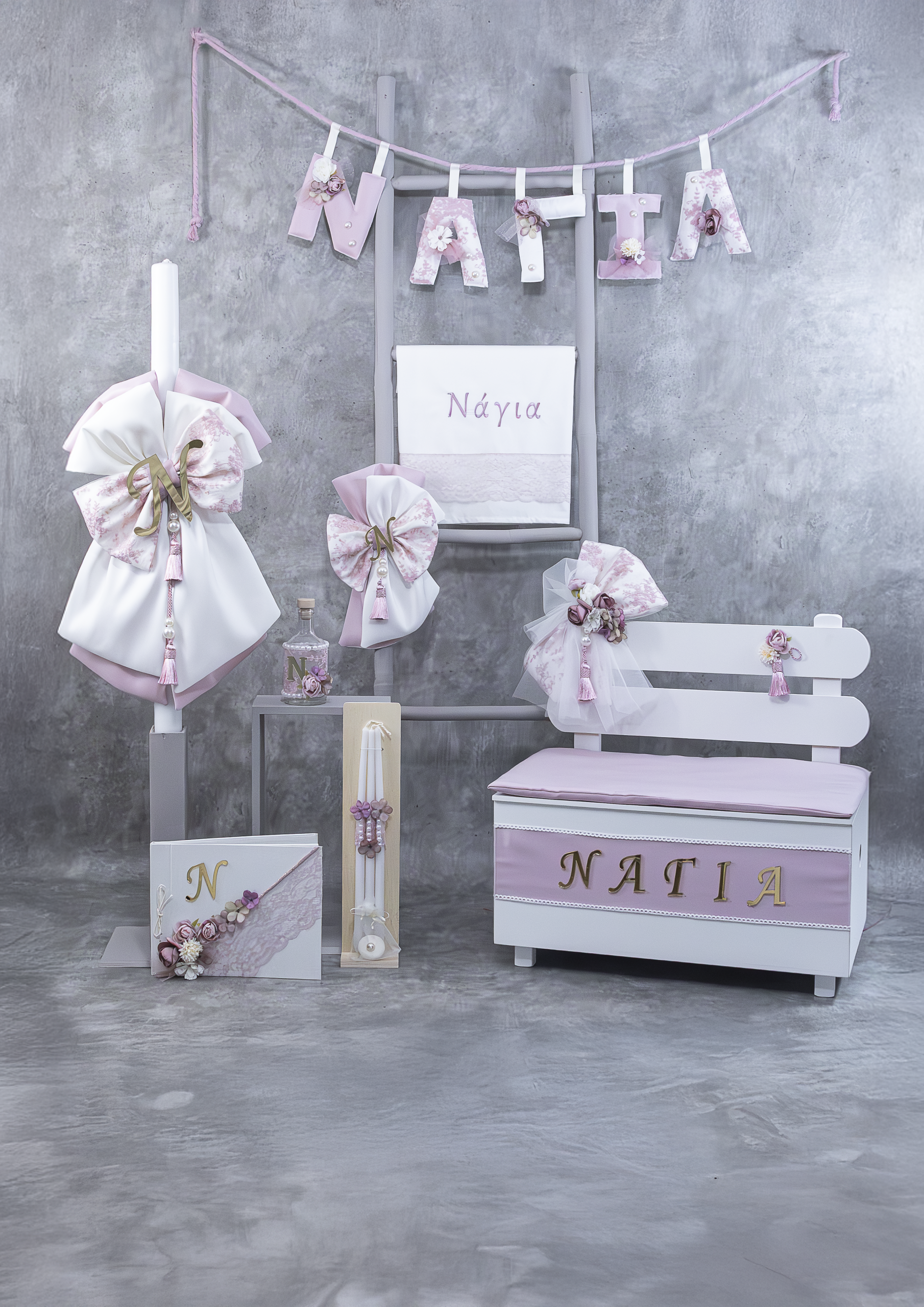 Ολοκληρωμένη πρόταση χειροποίητου βαπτιστικού σετ.