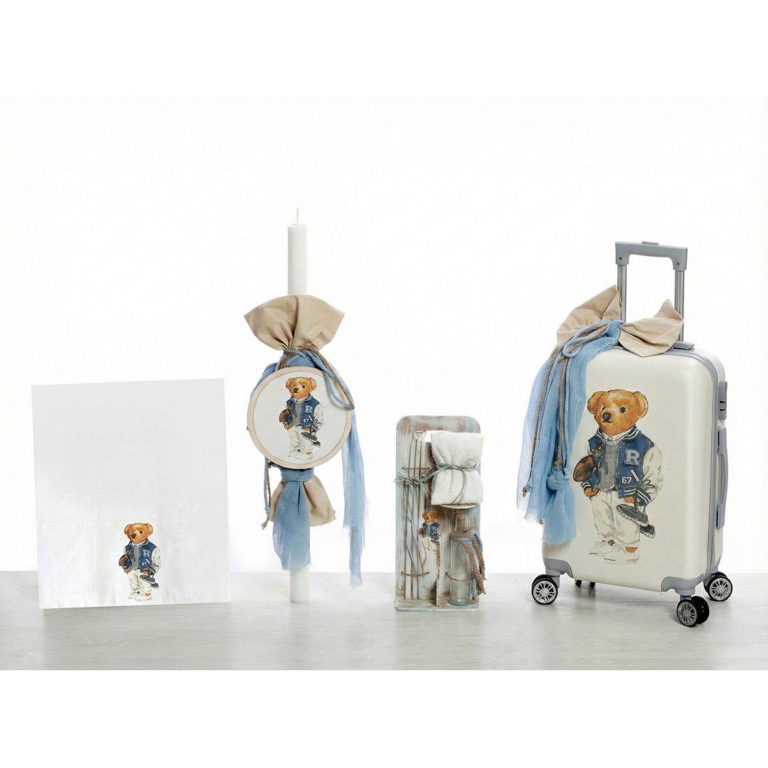 Ολοκληρωμένο πακέτο βάπτισης για αγόρι με θέμα το κλασικό αρκουδάκι “Polo Bear”, σε πρακτική βαλίτσα. Μια modern vintage πρόταση που συνδυάζει την υψηλή αισθητική με τη χρηστικότητα.