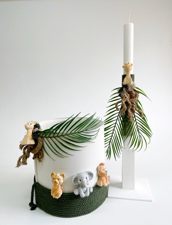 Σετ με λαμπάδα και καλάθι δερματίνη που θα χρησιμοποιηθεί μετά στο δωμάτιο του παιδιού!