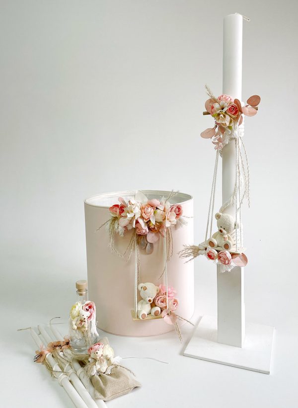 Σετ με λαμπάδα και καλάθι δερματίνη που θα χρησιμοποιηθεί μετά στο δωμάτιο του παιδιού!