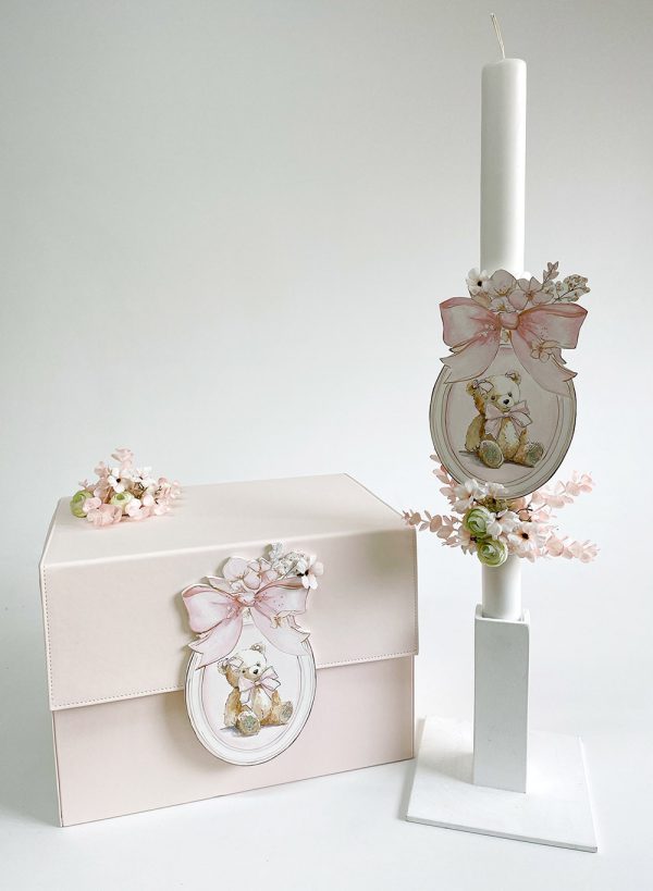 Σετ με λαμπάδα και κουτι παραλληλογραμμο δερματίνη που θα χρησιμοποιηθεί μετά στο δωμάτιο του παιδιού!