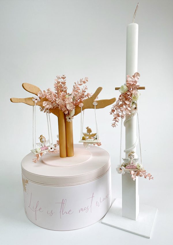 Σετ με λαμπάδα και κουτι δεντροσπιτο απο κουτι δερματίνη που θα χρησιμοποιηθεί μετά στο δωμάτιο του παιδιού!