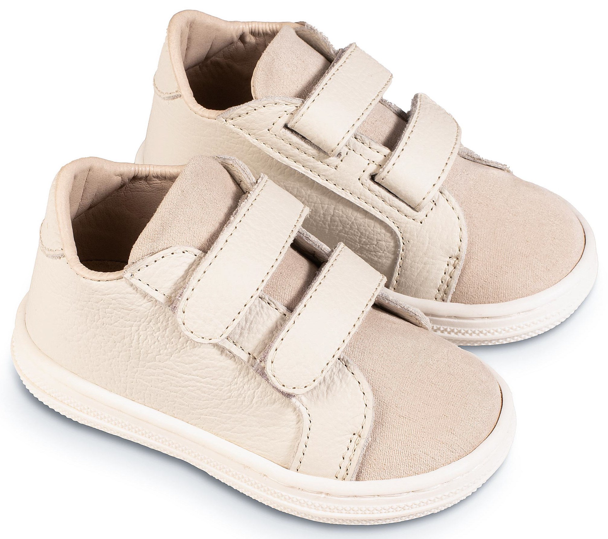Σνίκερ από Δέρμα και Ύφασμα με Διπλή Μπαρέτα Χρατς σε Εκρού Χρώμα