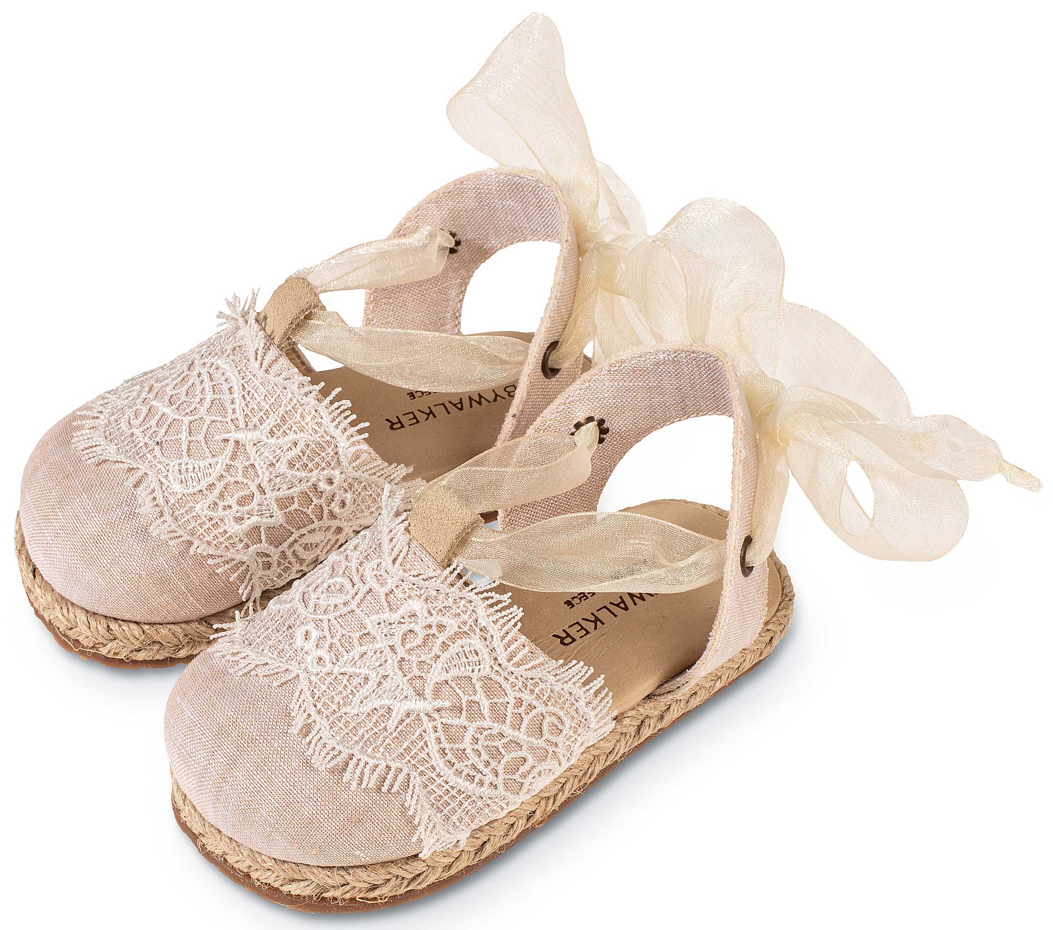 Υφασμάτινη Εσπαντρίγια με Λεπτομέρεια Δαντέλας και Δέσιμο απο Κορδέλα Οργάντζας σε Εκρού Χρώμα