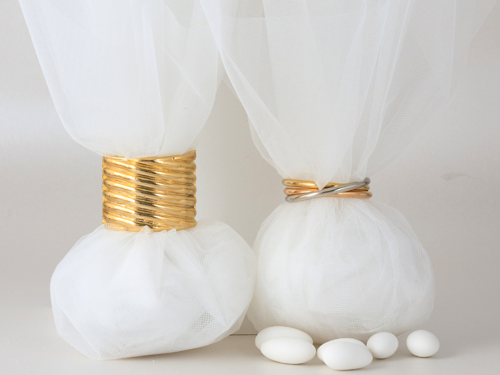 Ιδιαίτερη Μπομπονιερα Γάμου τουλι με Μεταλλικο διακοσμητικο για πετσετα, απο εξαιρετικης ποιοτητας το μεταλλο , K24.