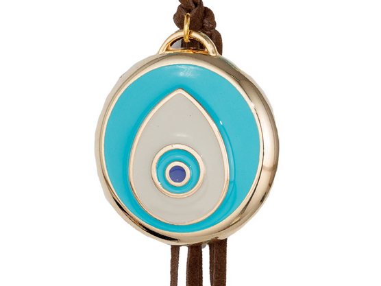 Ιδιαίτερη Μπομπονιερα Γάμου Κρεμαστη με Ματι απο εξαιρετικης ποιοτητας μεταλλο και Τιρκουαζ σμαλτο.